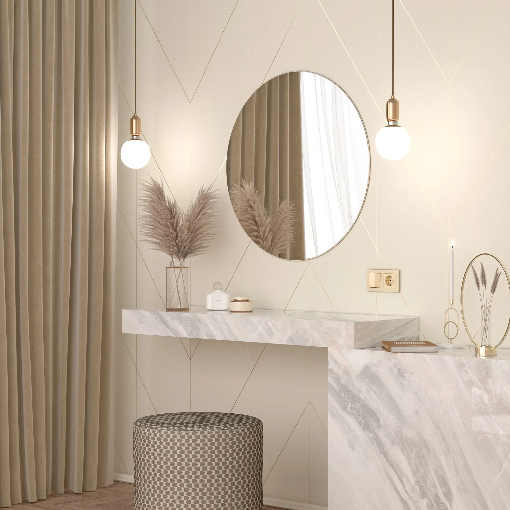 🔹 Цвет: шампань — гармонично сочетается с нейтральными тонами (белый, серый, бежевый), натуральным деревом, мрамором, чёрными акцентами и металлическими элементами (хром, латунь, матовое золото)