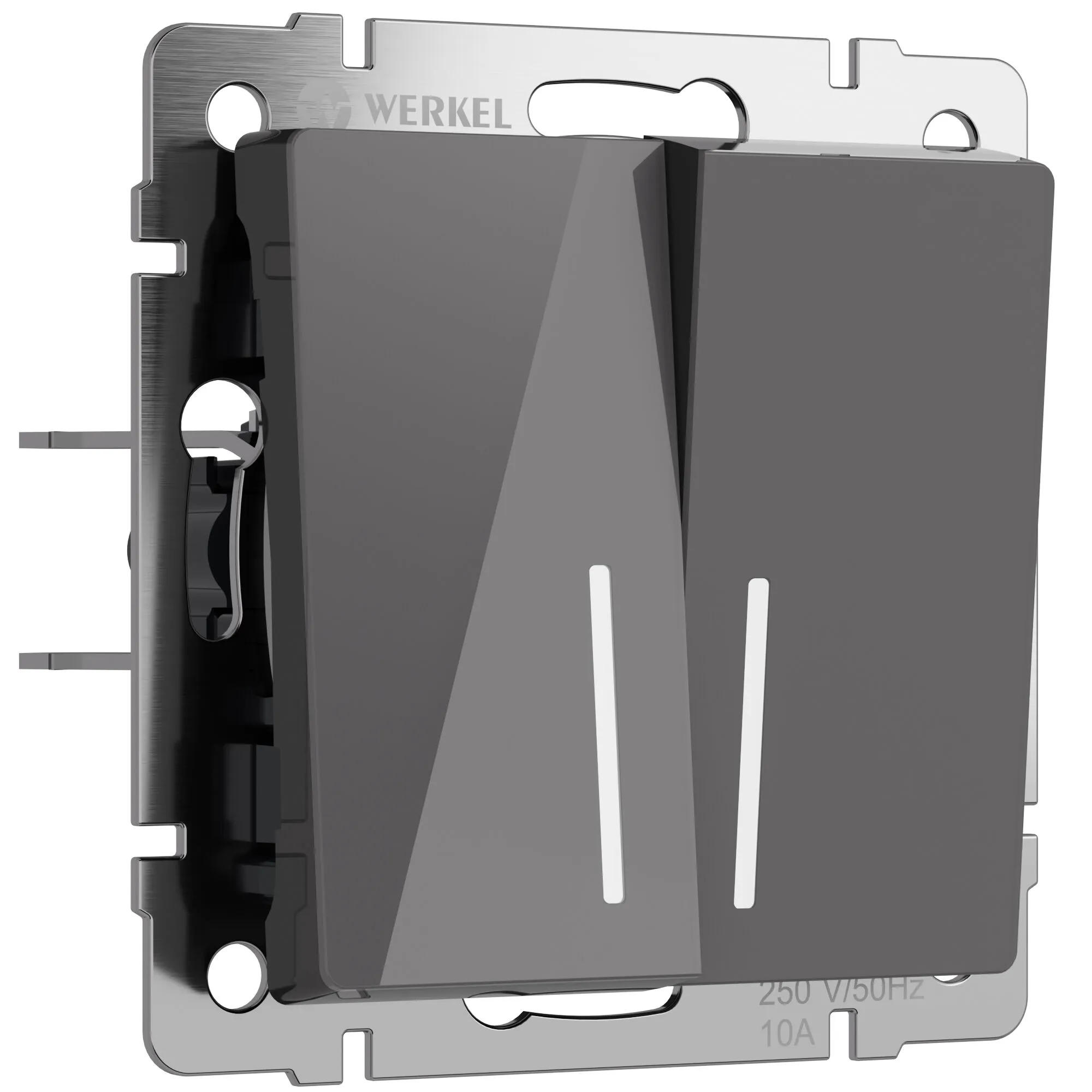 Двухклавишный выключатель с подсветкой Werkel графит акрил — удобство в темноте, стиль в деталях