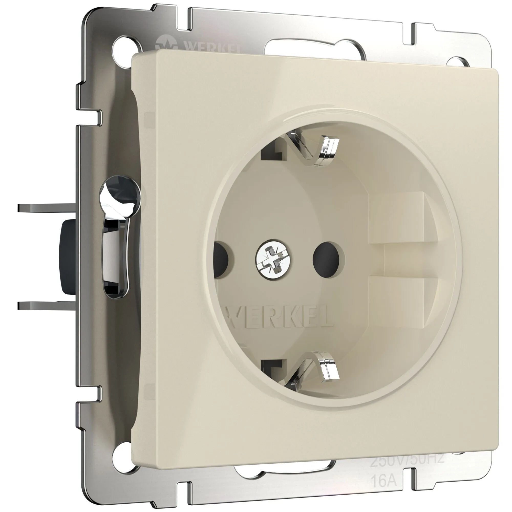 Лицевая панель выполнена в цвете слоновая кость с гладкой и тактильной мягкостью. Такая поверхность не притягивает пыль и идеально вписывается в любые стили — от скандинавского минимализма до лофта и классики. Белый цвет гармонично сочетается с любыми отделочными материалами, а универсальная совместимость со всеми рамками Werkel позволяет создавать индивидуальные композиции под ваш вкус.