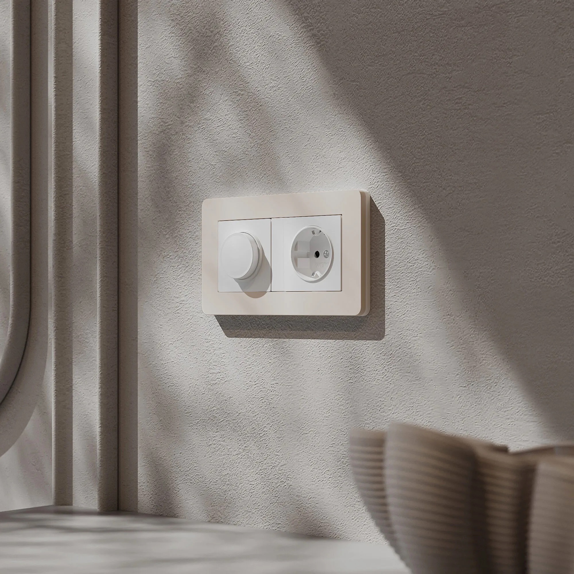 💡 Совет: Выберите механизмы в цвете «Дымчатый матовый» — новый оттенок от Werkel, вдохновлённый палитрой Old Money, идеально дополняет серо-бежевые тона лофта .